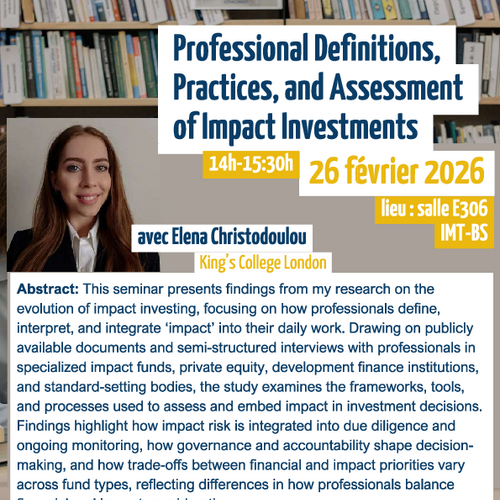 Nous avons le plaisir de annoncer le prochain séminaire LITEM/ETHOS, qui se tiendra le jeudi 26 février 2026, de 14h à 15h30, en salle E306 IMT-BS. Ce...